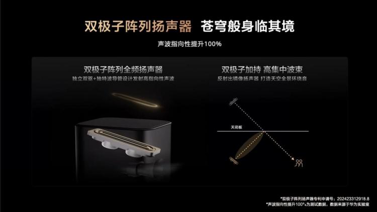 其中华为悦彰家庭影院行为华为首款利用该声学工夫的家庭影院居品,成为了疏通会的焦点之一,以「7.1.4星穹声场」、「鲸鳍超重低音」、「3D空间音频算法」三大中枢工夫为相沿,为家庭用户带来了全新的千里浸式家庭文娱体验。